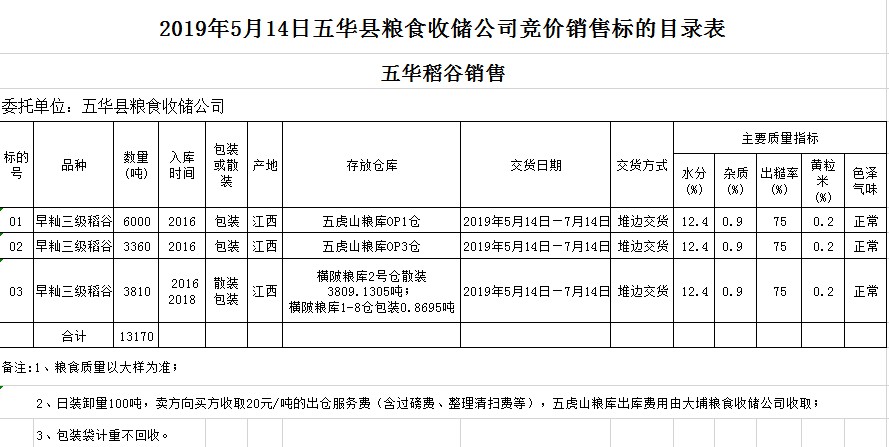 受客戶委托,梅州市嘉應(yīng)糧食交易中心有限公司定于2019年5月14日(星期二)舉辦糧食競(jìng)價(jià)交易會(huì),五華縣糧食收儲(chǔ)公司擬銷售2016年早秈稻13169.1305噸,2018年早秈稻0.8695噸。