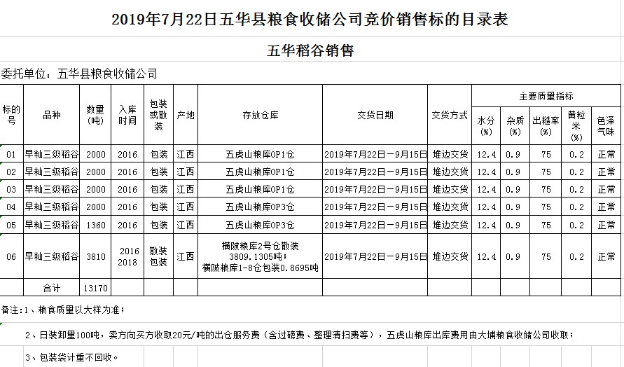 受客戶委托,梅州市嘉應(yīng)糧食交易中心有限公司定于2019年7月22日(星期一)舉辦糧食競(jìng)價(jià)交易會(huì),廣東省五華縣糧食收儲(chǔ)公司擬銷(xiāo)售2016年早秈稻13169.1305噸,2018年早秈稻0.8695噸。