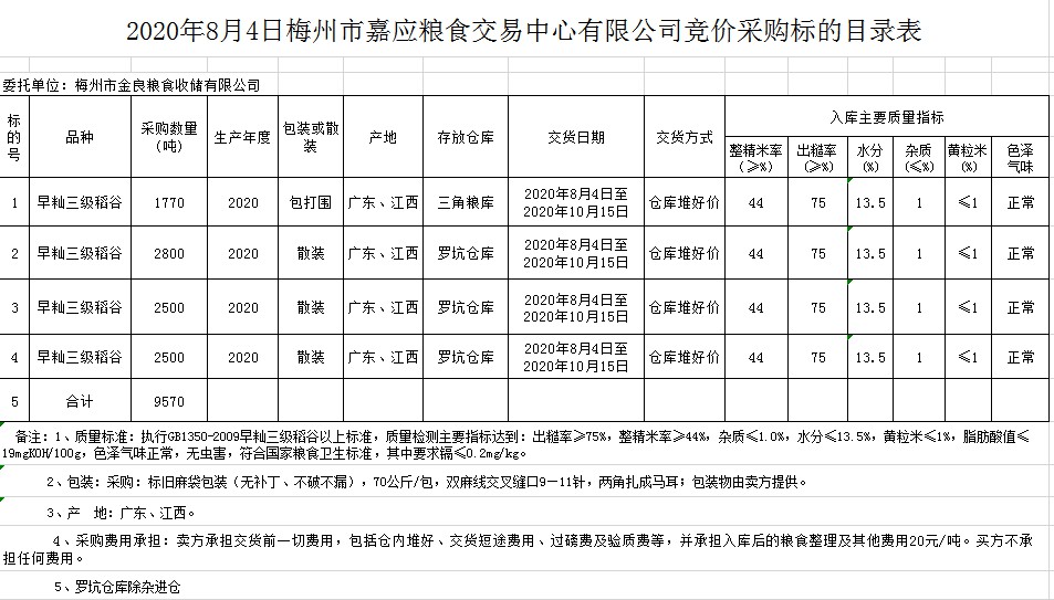 2020年8月4日梅州市金良糧食收儲(chǔ)有限公司稻谷采購(gòu)