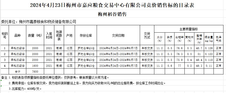 2024年4月23日梅州市嘉泰糧食和物資儲(chǔ)備有限公司稻谷銷售