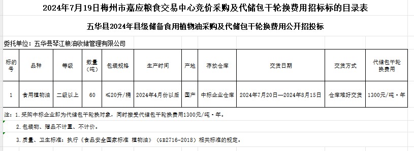 五華縣2024年縣級(jí)儲(chǔ)備食用植物油采購(gòu)及代儲(chǔ)包干輪換費(fèi)用公開(kāi)招投標(biāo)公告