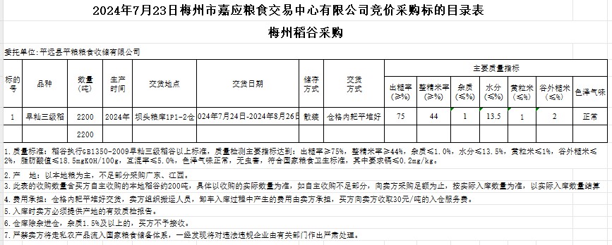 三、交易資格:在梅州市嘉應(yīng)糧食交易中心有限公司成功報(bào)名并提供單位有關(guān)資料的單位。