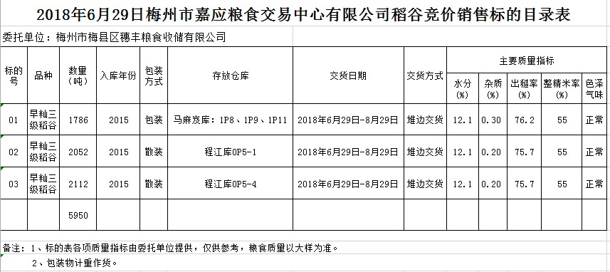 交易時間和地點(diǎn):2018年6月29日(星期五)上午10時15分。廣東省梅州市彬芳大道南161號梅州市糧食交易中心3樓。